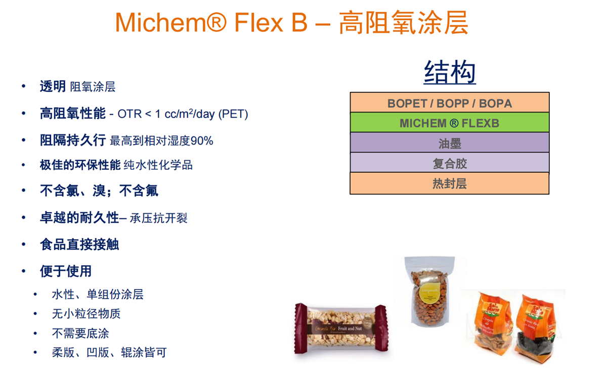 軟包裝的解決方案:阻氧涂層-在聚烯烴基材上具有較好的耐久性,阻氧效果可達(dá)到1cc/m2/day。熱封涂層-低熱起封溫度且具有優(yōu)異的熱封強(qiáng)度,擠出復(fù)合底涂-可加強(qiáng)薄膜、鋁箔以及紙張等基材與擠出樹脂(例如聚乙烯和特種聚合物)之間的粘連強(qiáng)度,上光油-提高表面的光澤度和防水。